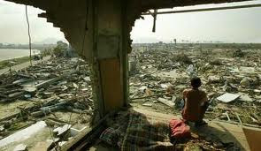 in the ruins of tsunami..